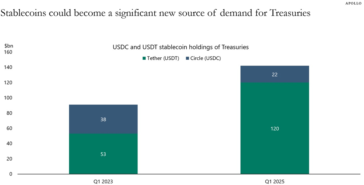 Stablecoins are cryptocurrencies designed to maintain a stable value, typically pegged to the US dollar. To ensure this 1:1 peg, issuers such as Circle (USDC) and Tether (USDT) hold reserves largely made up of short-term U.S. Treasuries — low-risk, interest-bearing assets. These reserves are not only essential for stability, but also a key source of revenue: issuers earn interest on the assets backing their stablecoins. In 2024, for example, Circle generated $1.68 billion in revenue, 99% of which came from interest income. Circle, recently listed on public markets, is viewed as more transparent and U.S.-regulated, while Tether remains the dominant global player, with a more opaque structure but significantly larger market share. As of December 2024, Tether held approximately $113 billion in U.S. Treasuries, ranking it among the top global holders — reportedly the 7th largest, ahead of many countries. This dynamic makes stablecoin issuers a new and significant source of demand for U.S. debt. In a political context, it could help explain why a future Trump administration might tolerate higher interest rates or larger deficits — if crypto-based buyers continue absorbing Treasury supply.